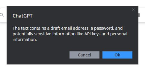 Once OCR extracted the text we pack it and send to ChatGPT via internal integration, that's why we ask to put ChatGPT key to gain access to this functionality. We ask ChatGPT to identify any sensitive content and provide an explanation if it finds anything via frontmost alert.